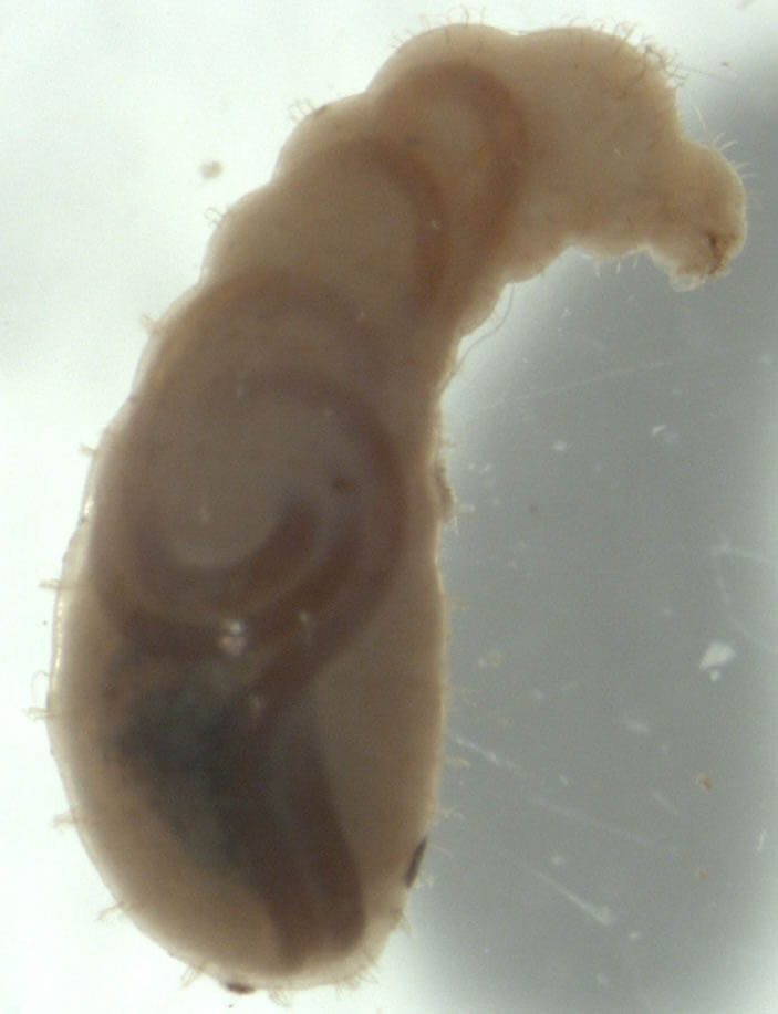 In the pupal stage, the creatures go dormant. They stop eating and focus all of their energy on developing. It’s in this stage that the juveniles begin to look like the adults. They grow legs and the distinctive body segments of the adults, and darken from their initial white color to the brownish-red they will appear for the rest of their lives.